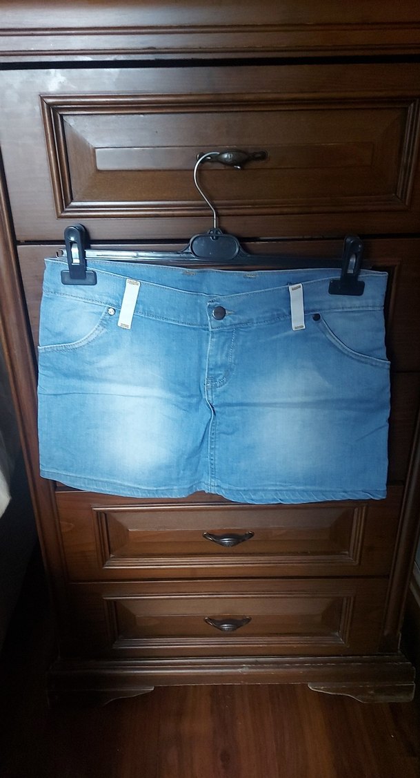Mavi kot kumaştan, bel detaylı, kısa ve dar kesim mini etek. Sokak modasına uygun, günlük kullanıma elverişli, desensiz tasarım.