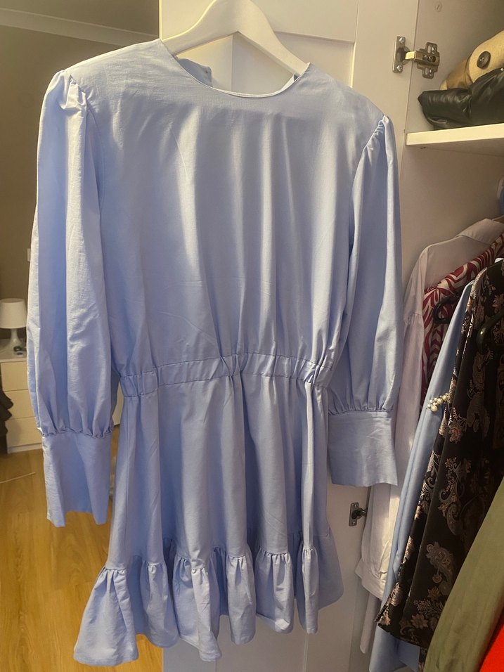 Mavi bel detaylı fırfırlı gömlek
