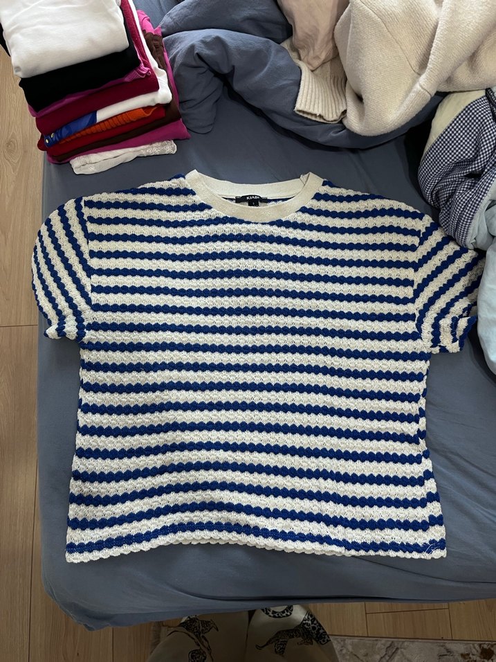 Mavi Beyaz Çizgili Örgü Kadın Tişört