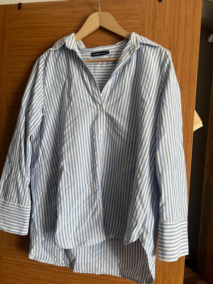 Mavi beyaz Çizgili Pamuklu Uzun Kollu Gömlek
