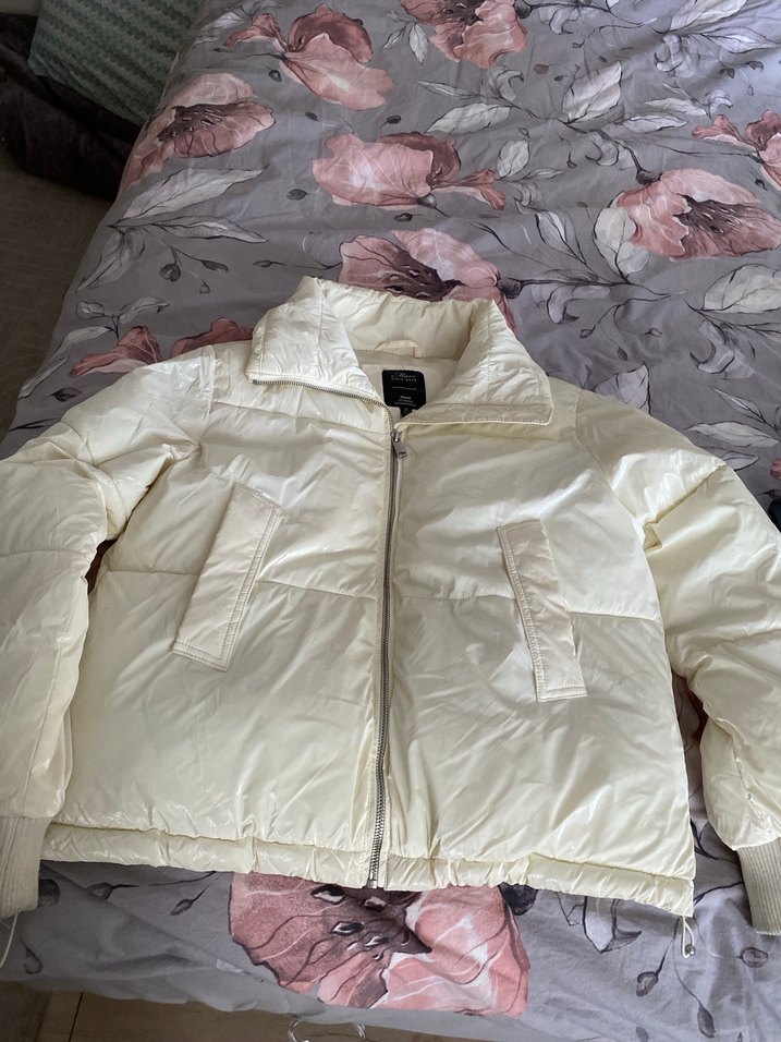 Fermuarlı, yakalı ve uzun kollu, beyaz renkte, yumuşak sentetik kumaştan yapılmış, rahat kesimli midi kadın mont. Sokak stili için uygun ve gündelik kullanıma ideal. ❄️