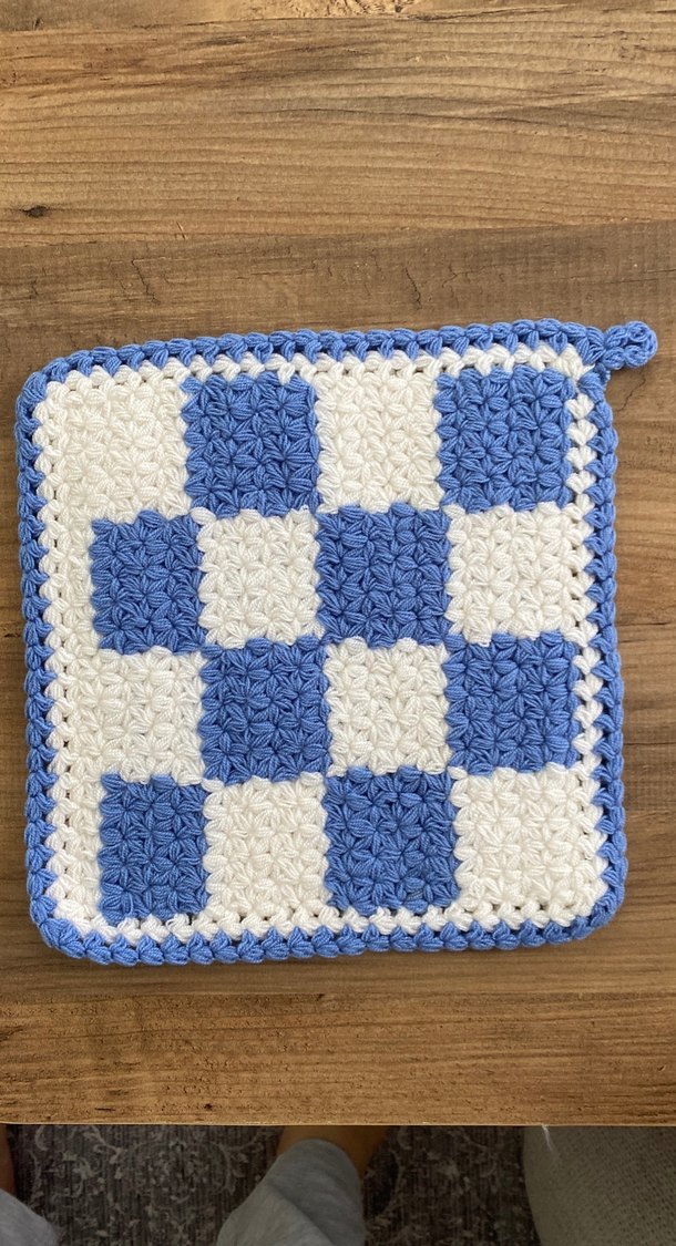 Mavi Beyaz Kareli Örgü Banyo lifi