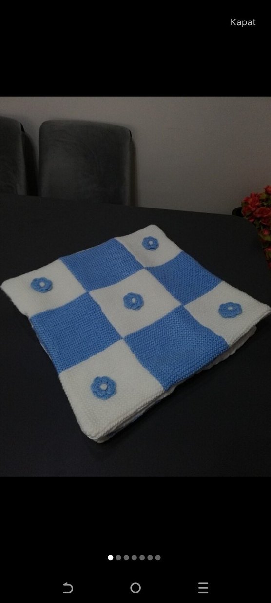 Mavi Beyaz Kareli Örgü Bebek Battaniyesi