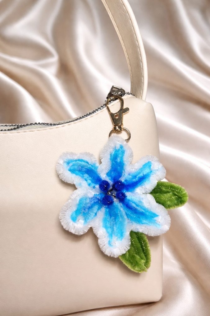 Mavi, beyaz rengi lilyum çanta çharm