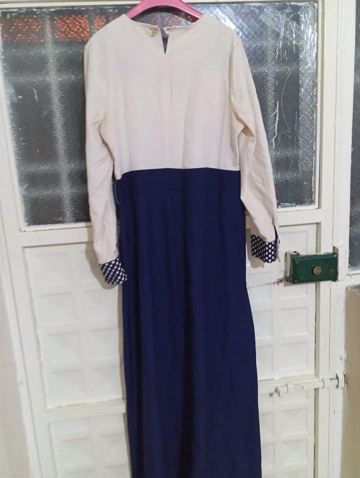 Mavi Beyaz Uzun Kollu Salaş Elbise
