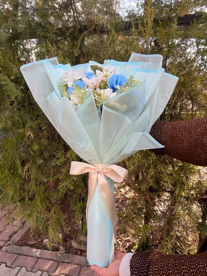 Ferahlığın ve sadeliğin en şık yorumu… Mavi ve beyaz tonlardaki çiçeklerin uyumuyla hazırlanan bu özel buket, huzur veren renk paleti ve modern ambalaj tasarımıyla her ortama zarafet katar.