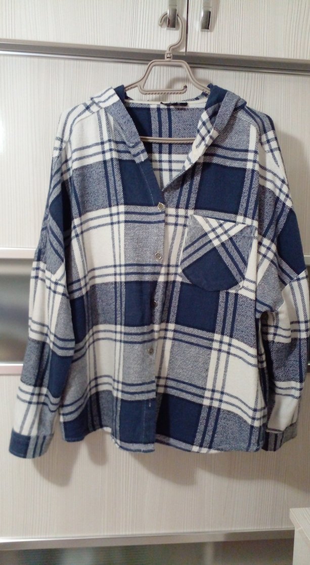 Pamuklu, mavi ve beyayi kareli, düğmeli, uzun kollu, rahat kesim kadın gömleği. Normal midi boyda, notched lapel yakalı, günlük rahat stil için uygundur.