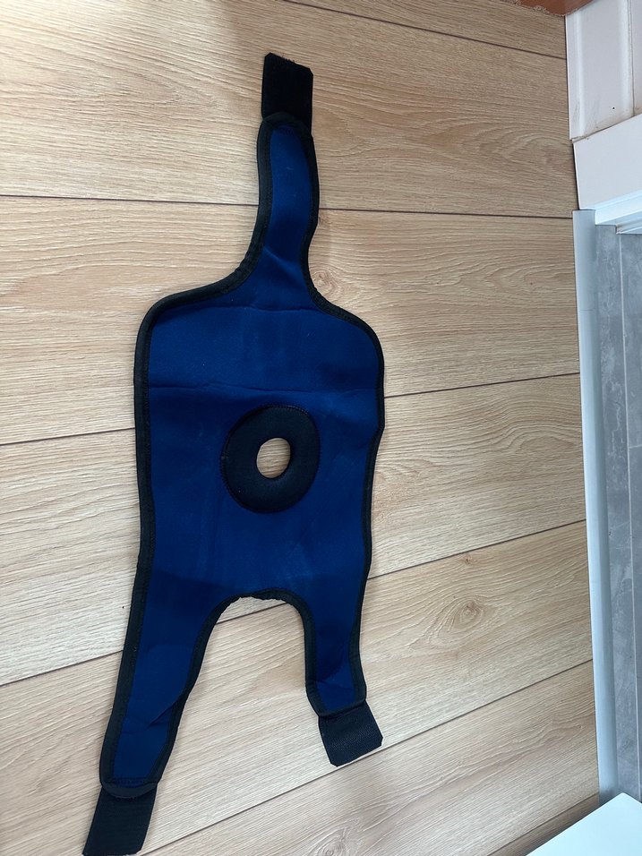 Yumuşak fleece kumaş ve Velcro bantlı koyu mavi biker tarzı diz pedleri. Desensiz, athleisure kullanıma uygun. ️