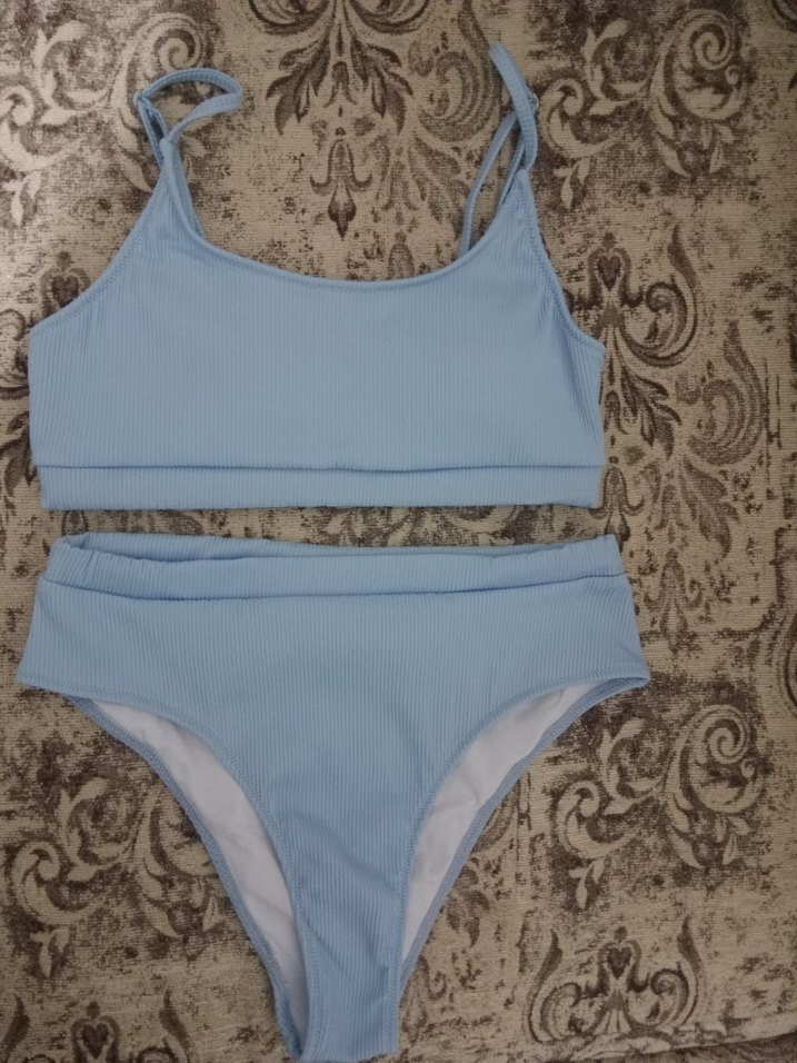 Mavi yüksek bel bikini takımı.Hiç kullanılmadı.