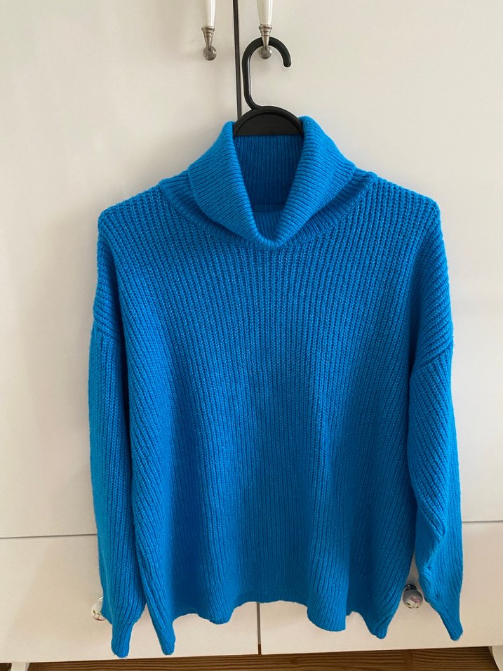 Mavi boğazlı kazak üründe hiç ve deforme yoktur çok az kullanıldı.