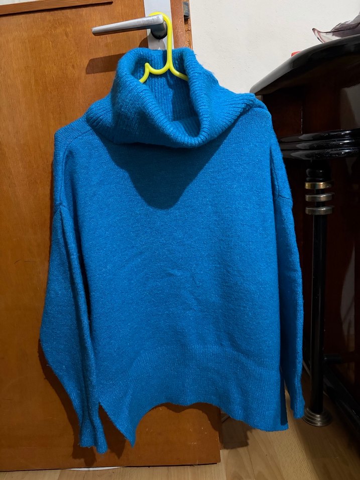 Mavi Boğazlı Örgü Kadın Kazak