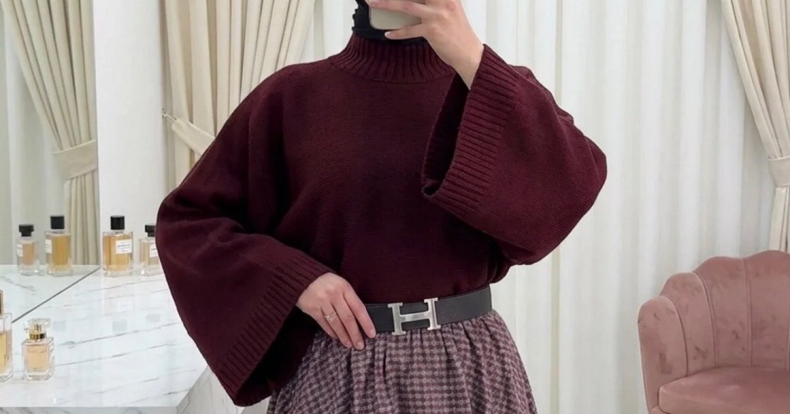 Mavi renkli, boğazlı ve salaş kesim örgü kazak, uzun kollu ve midi boyda rahat ve şık bir günlük tercih sunar. İlk görsel üstte duruşu içindir