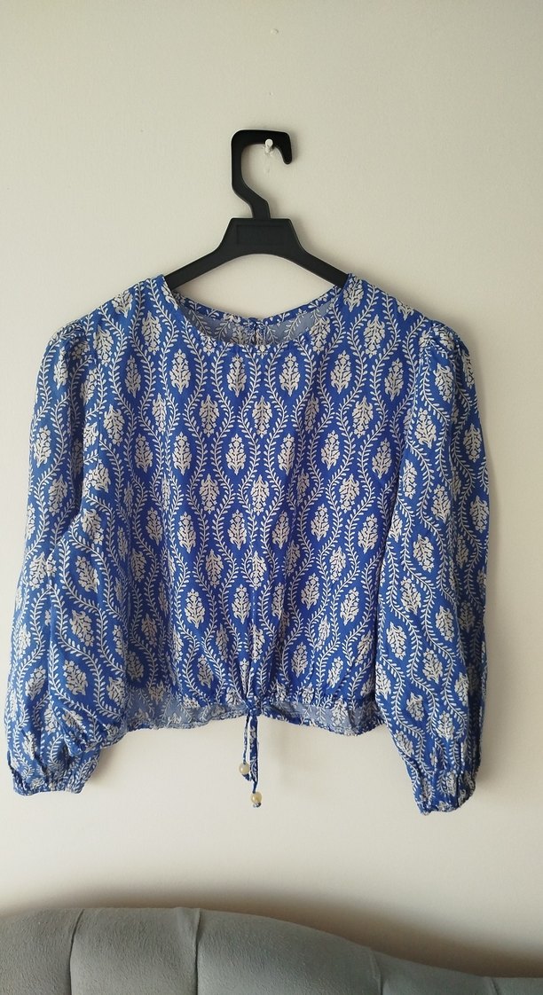 Mavi Bohem Düğmeli Uzun Kollu Bluz