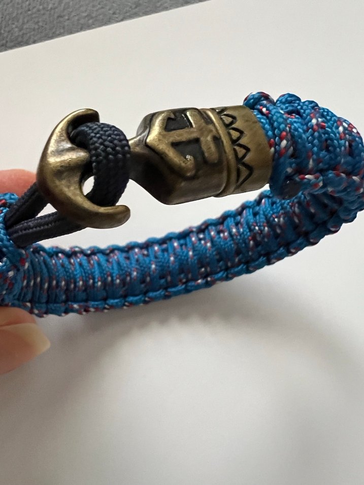 Mavi renkli örgü tasarıma sahip, pirinç çapa tokalı bohem ve retro tarz erkek bileklik. ⚓hediye geldi fakat hiç kullanılmadı.Yeni ve sorunsuzdur.