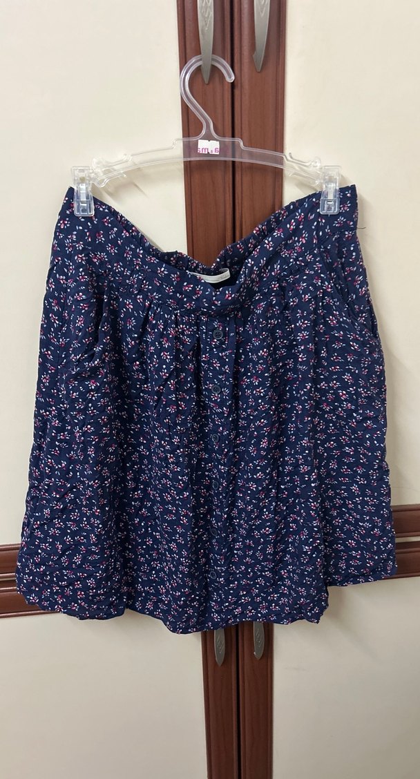 Mavi bohem tarzda, pamuk kumaştan yapılmış, pileli ve bol kesim midi etek. Günlük rahat kullanım için uygundur.