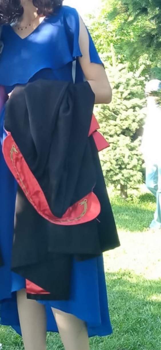 Mavi, askılı kolsuz bohem tarz midi elbise, bol kesim ve püskül detayına sahiptir. Açık hava mezuniyetleri için uygundur.