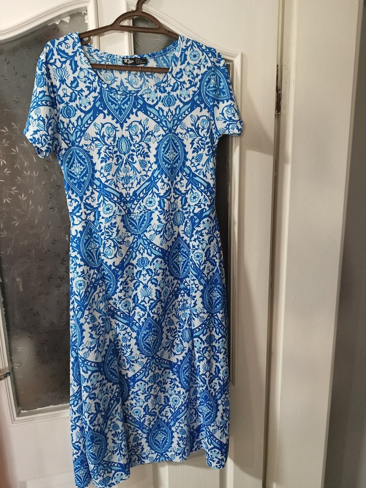 Mavi Bohem Pamuklu Midi elbise sifir hic kullanilmafi
