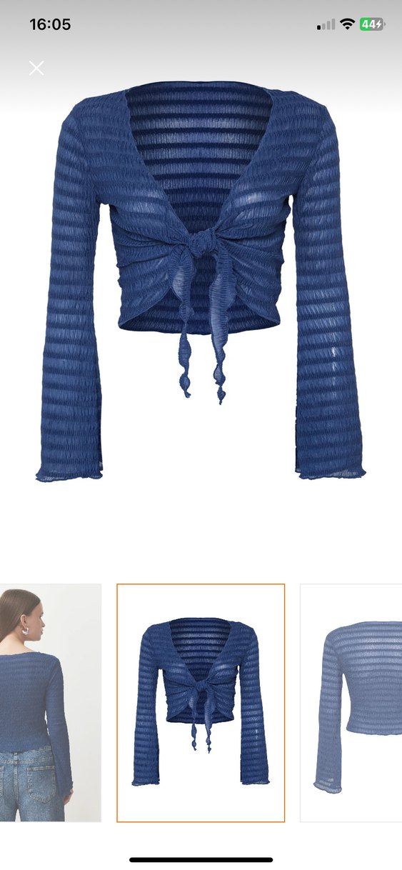 pliseli triko bolero. Uzun kollu, V yakalı ve bohem tarzda tasarlanmıştır.