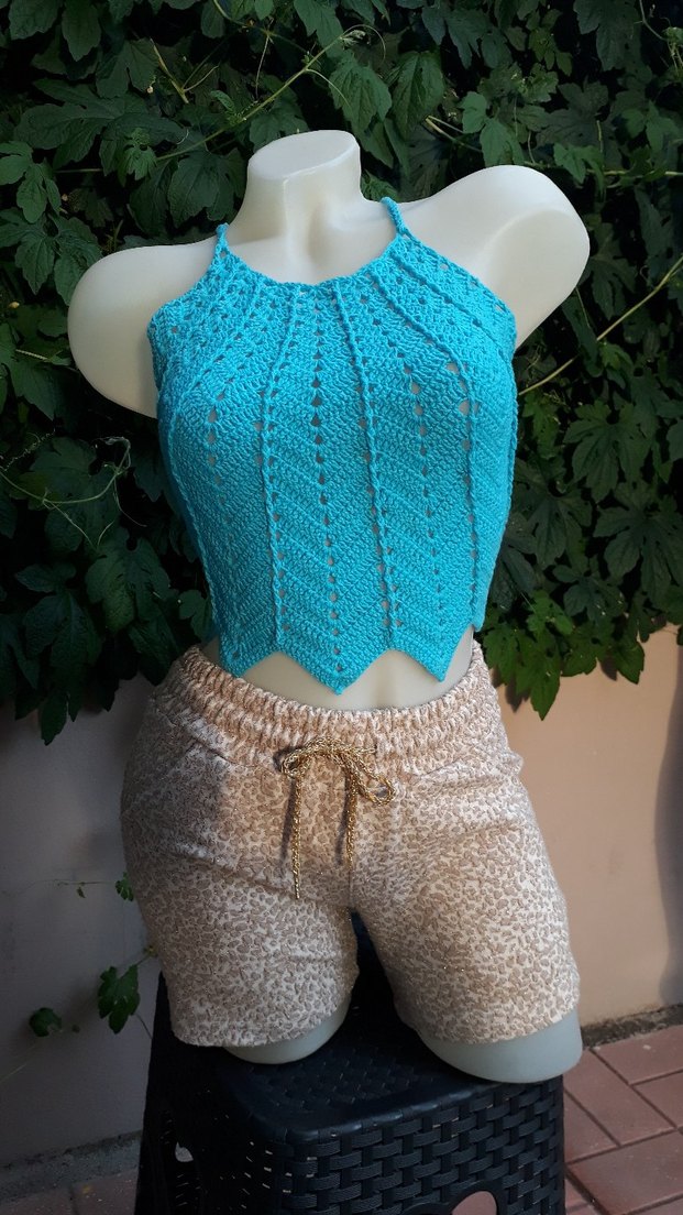 Mavi bohem tarz el emeği #bluz #crop #büstiyer