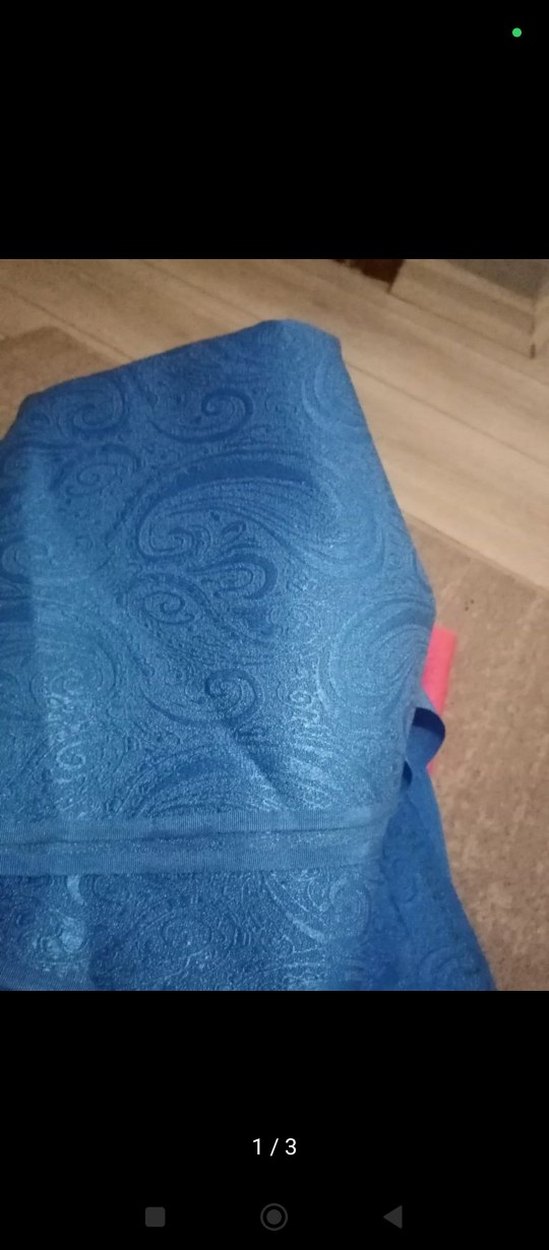 Koyu mavi renkli, yumuşak sentetik kumaştan yapılmış, zarif paisley desenli ve bohem tarzında kumaş çok eskilerden kalma