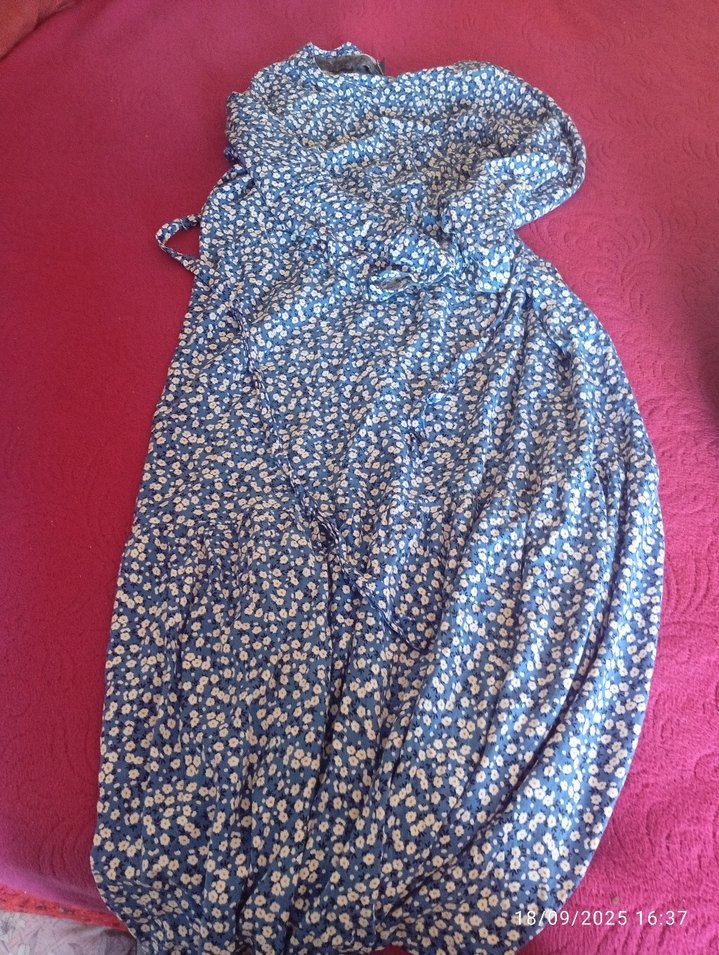 Mavi renkte, bohem tarzda, uzun ve bol kesim hamile eteği. Yumuşak sentetik kumaştan, günlük kullanım için rahat ve dökümlü.