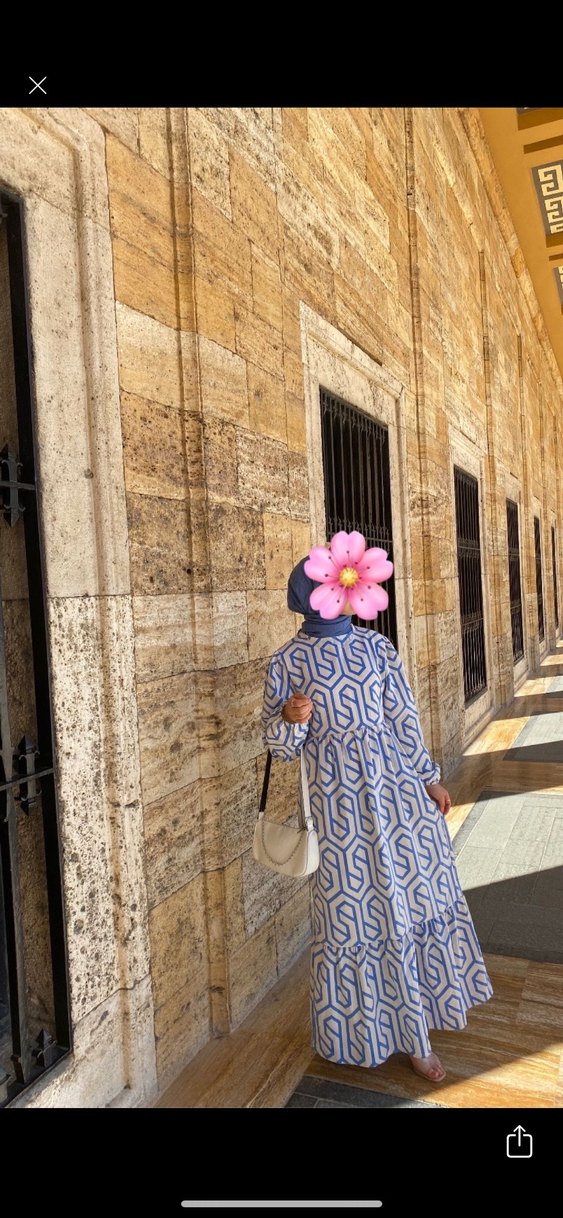 Yüksek yakalı, ince askılı, bol kesim uzun elbise. Pastel mavi renkli tie-dye desenli, püskül detaylı ve sentetik kumaştan. Günlük kullanıma uygun bohem stil.