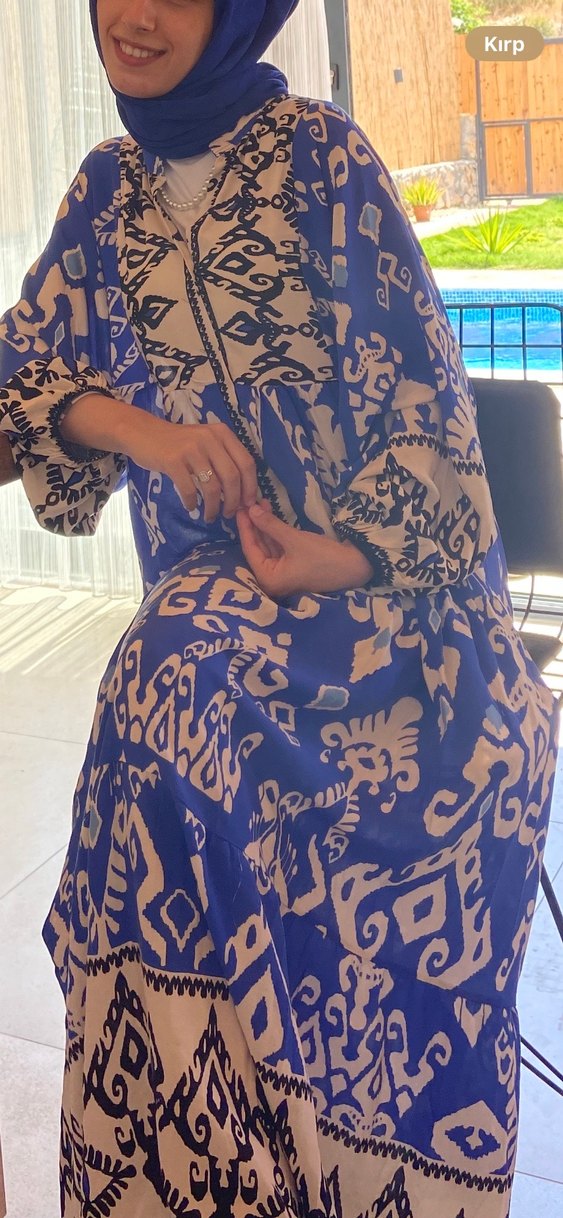 Mavi Bohem Uzun Kollu Salaş Elbise