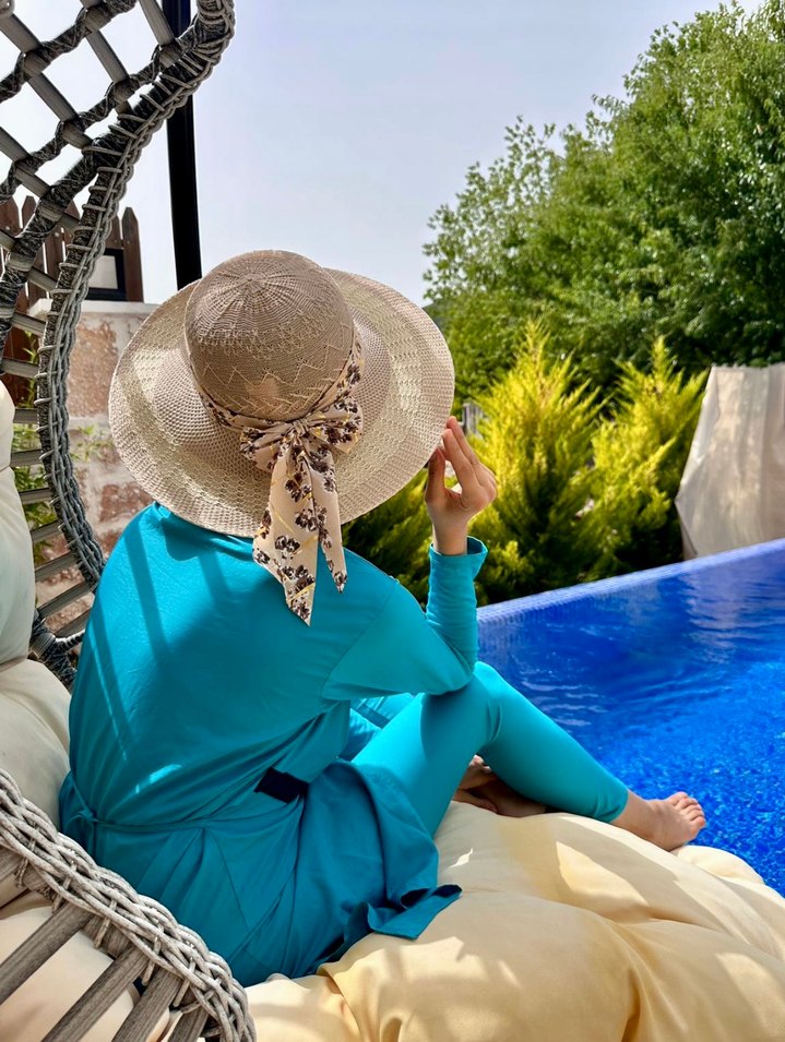 Mavi Bohem Uzun ve Salaş Kadın tesettür haşema