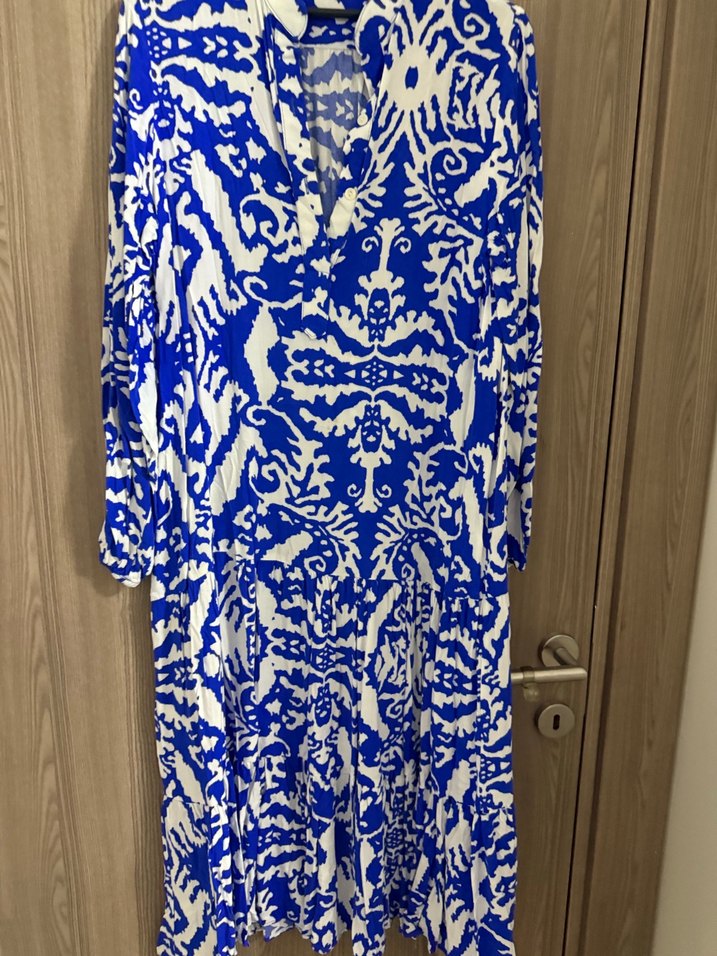 Mavi Bohem V Yaka Uzun Kollu Elbise