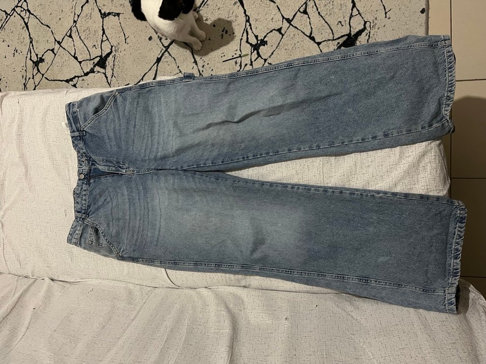 Gri renkte, bol kesim ve kemerli kadın denim pantolon. Normal boyda, rahat ve günlük sokak stiline uygun.Çok severek kullanıyodum kilo verdiğim için şuan çok bol geliyor