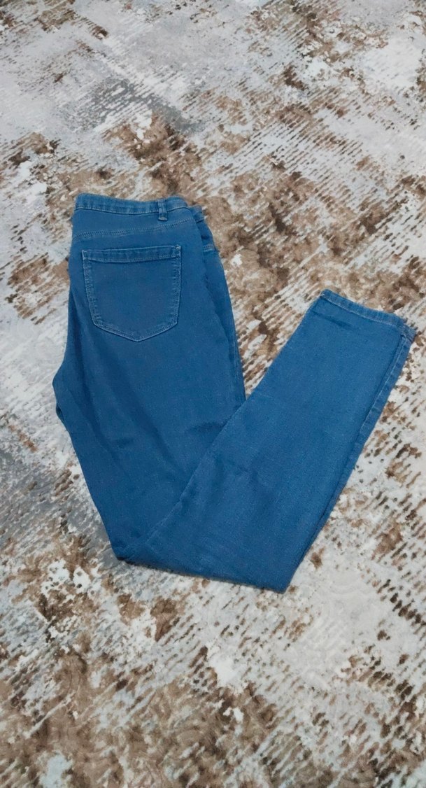 Mavi denim kumaştan, bol kesim ve normal midi boyda, rahat ve trend sokak stili kadın kot pantolon.