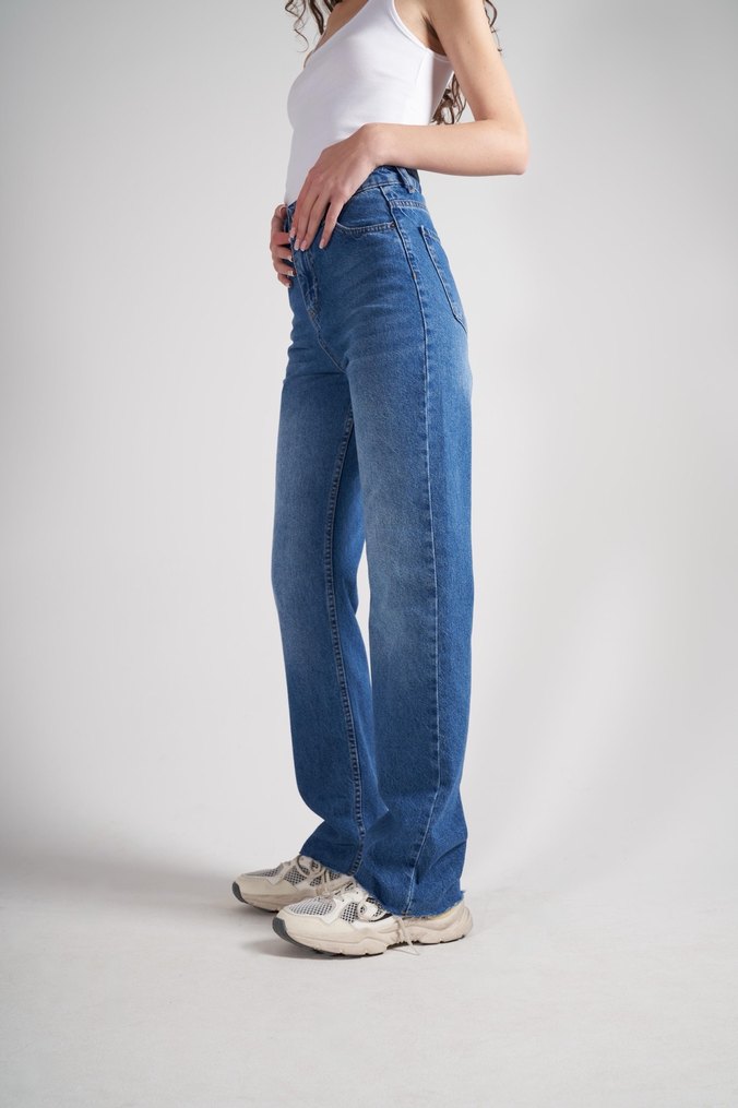 mavi Bol Kesim Kot Pantolon