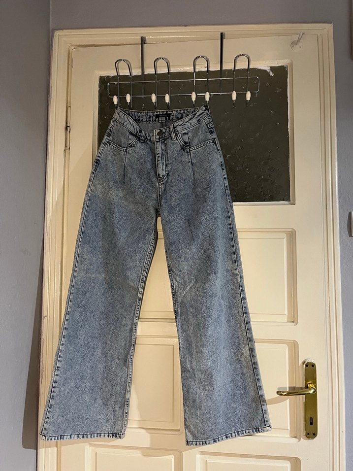 Mavi renkli, bol kesim kot. beline daraltma yapildi 34 bedene uygun