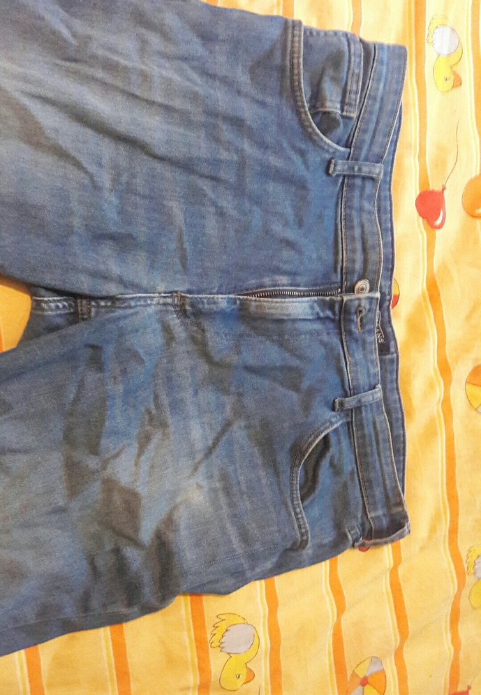 Mavi renkli, bol kesim midi boy jean, parlak denim kumaş ve tokalı detaylara sahip, günlük rahat sokak stili için ideal.
