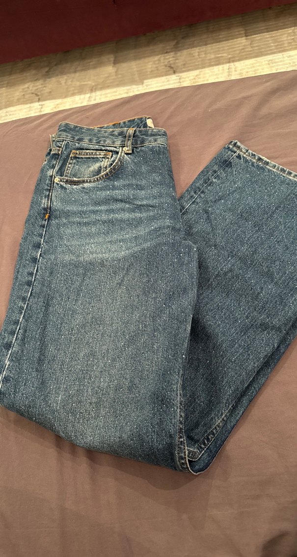 Parlak mavi renkte, bol kesim midi boy kot pantolon, tokalı detaylı, gündelik rahat kullanım için uygun.