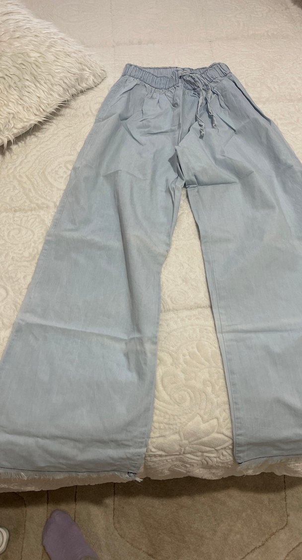 Gri renkli, bol kesim ve midi boy kot pantolon. Rahat tasarımıyla günlük kullanıma uygun, bohem ve şık bir stil sunar.