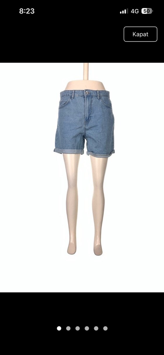 Pastel mavi renkte, bol kesim ve kısa boyda denim mini şort. Günlük sokak stiline uygun. S ve M bedene uygundur.