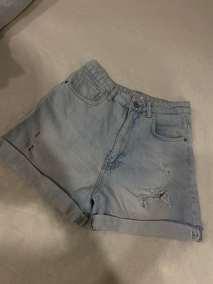 Gri renk, bol kesim mini denim şort. Günlük sokak stiline uygun, desen içermeyen rahat bir tasarım. Effortless chic tarzıyla öne çıkar.