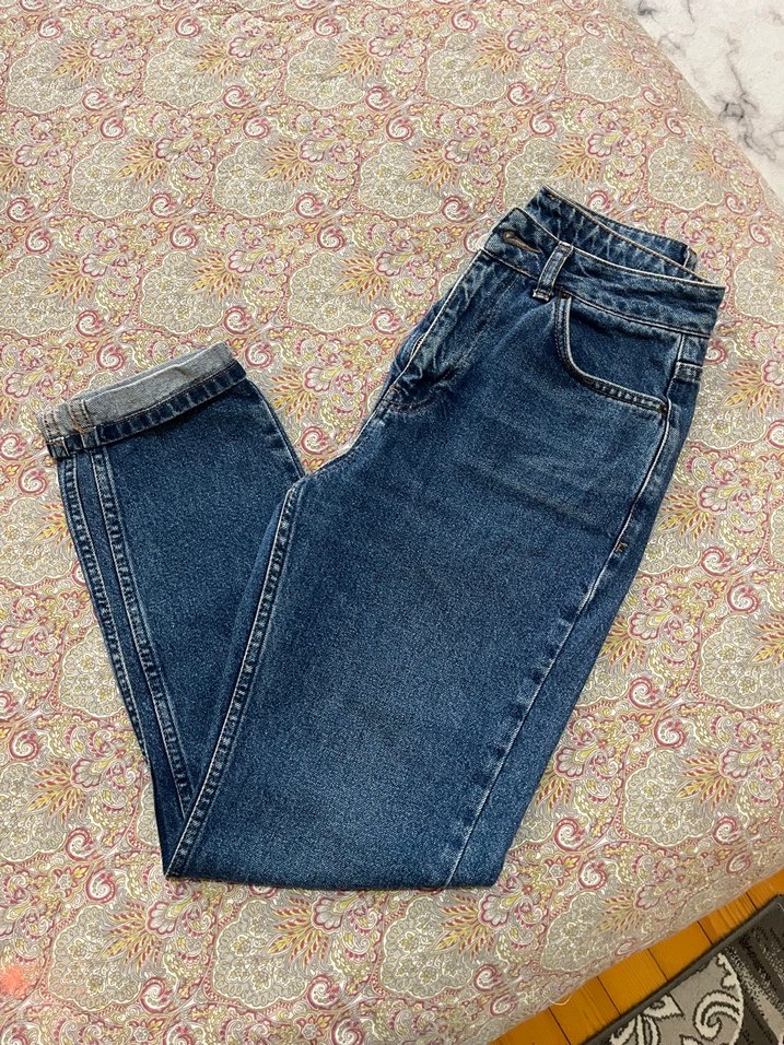 Mavi denim kumaştan, bol kesim ve normal boyda kadın kot pantolon. Bohem ve retro tarzıyla günlük kullanıma uygun rahat bir model.
