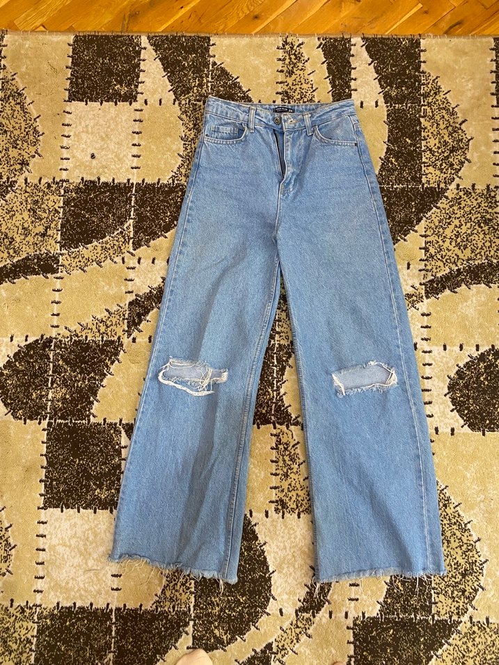 Mavi Bol Kesim Yırtık Paça Kot Pantolon