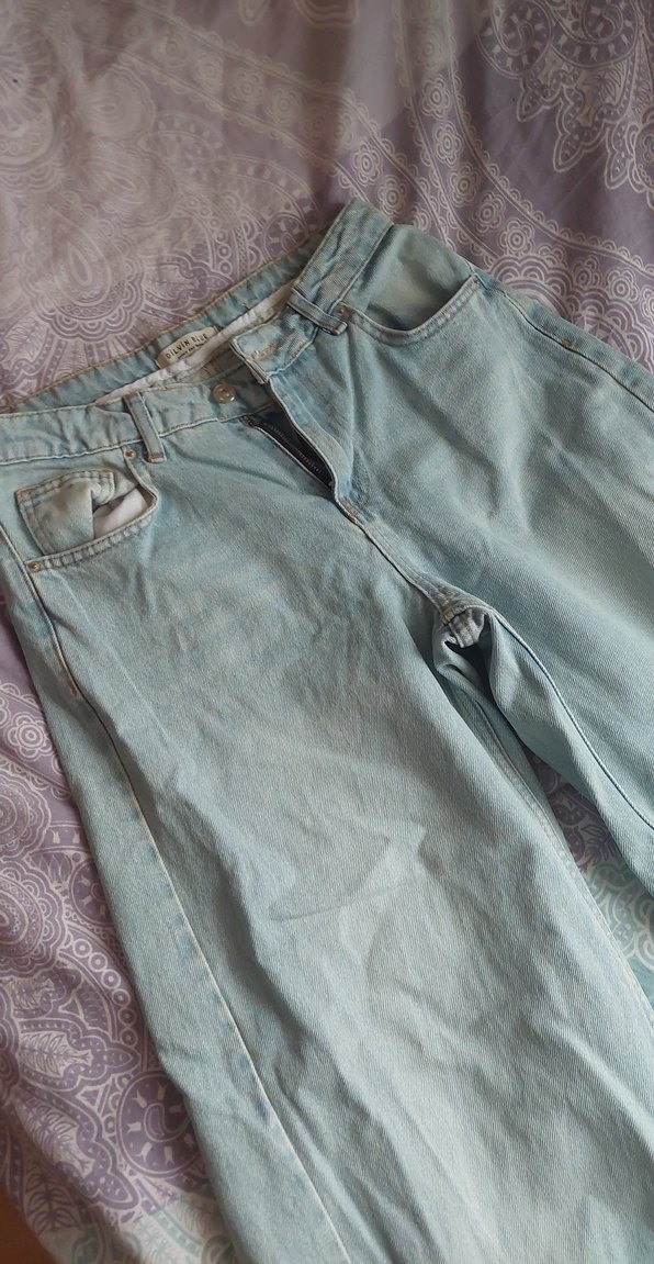 Mavi renkli, baggy kot pantolon neredeyse 2 defa giydim