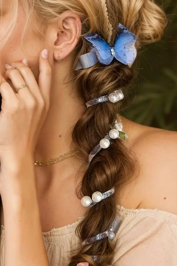 Pastel mavi renkte, boncuk detaylı, kadın saç aks. mavi-açık pembe ve koyu pembe 3 renk 1 adet fiyatıdır