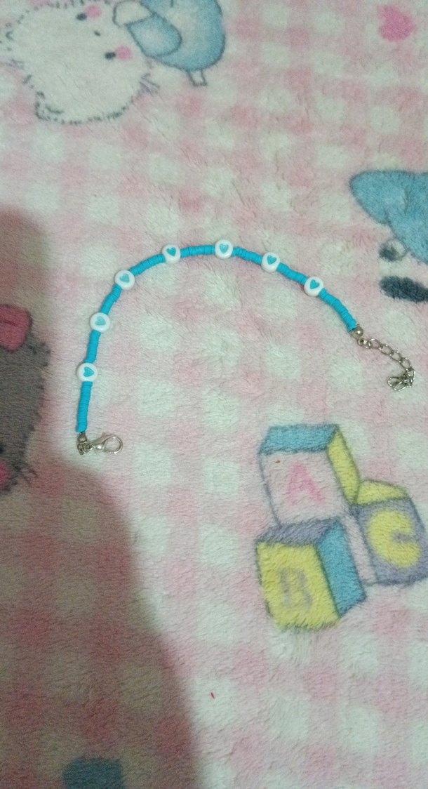 Pastel mavi boncuklar ve küçük beyaz kalp detaylarıyla kadın bileklik, bohem sokak stili için uygun.