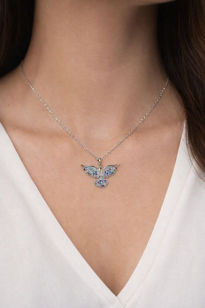 Mavi Boncuklu Kelebek Kolye