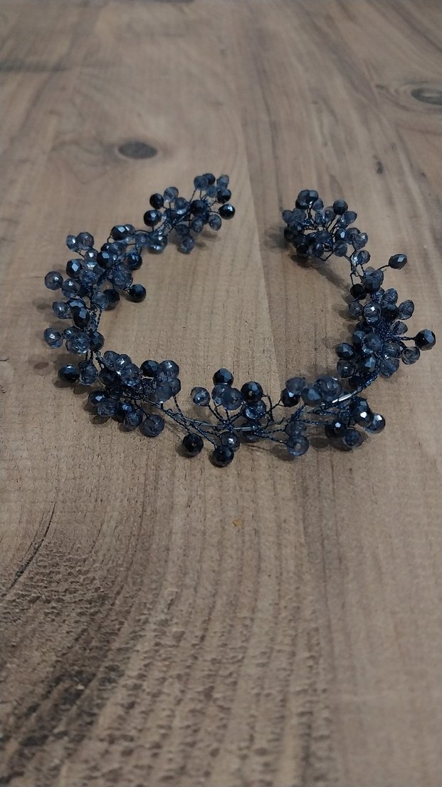 Koyu mavi cam boncuklarla süslenmiş bohem tarzda saç aksesuarı.