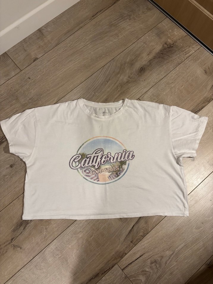 Mavi California Baskılı Beyaz Tişört