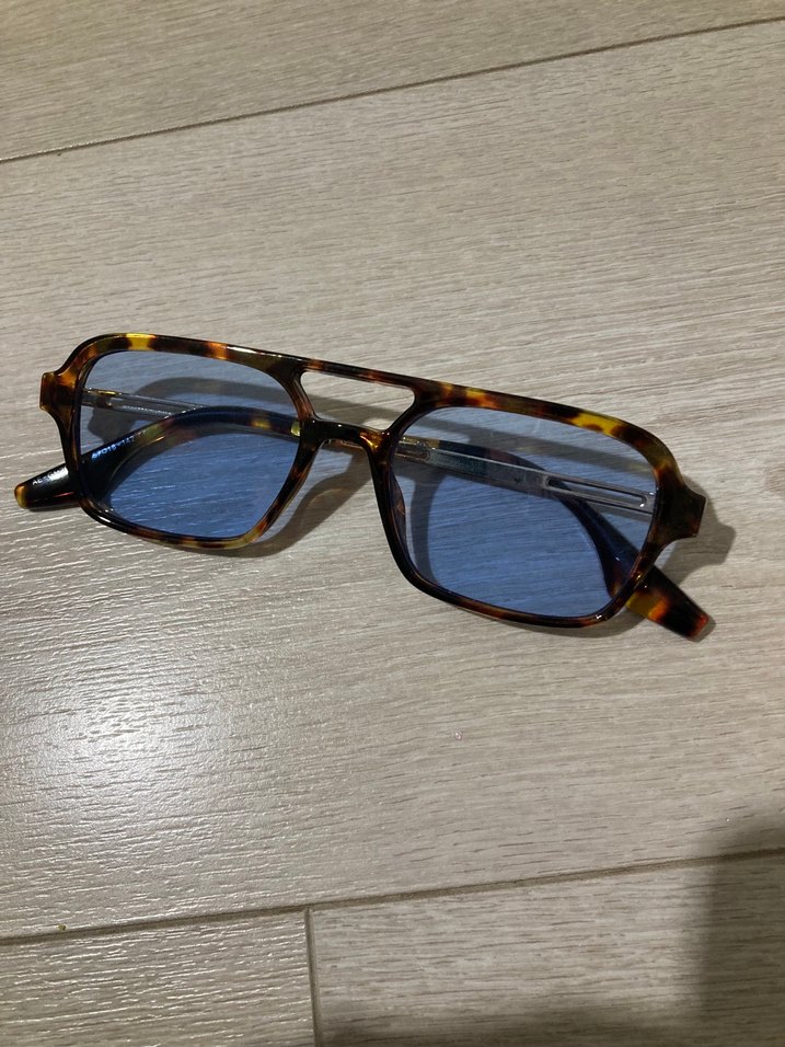 Koyu mavi şeffaf camlara ve kaplumbağa kabuğu desenli çerçeveye sahip, bohem ve retro tarzda kadın gözlüğü. ️