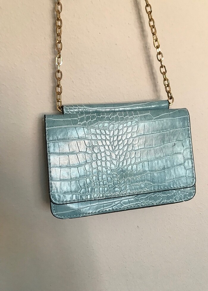 Küçük tatlı bir çanta, aynı ton mavi ayakkabıyla kullandım