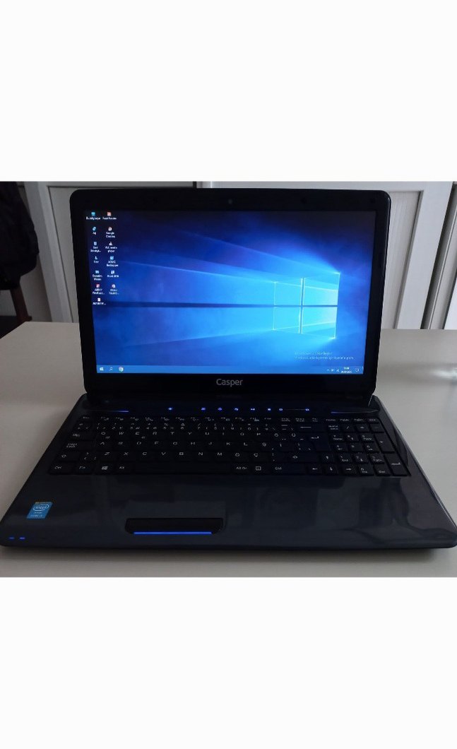 Windows işletim sistemi ve tam klavyeye sahip mavi Casper laptop. Günlük kullanım için uygun kompakt tasarım.