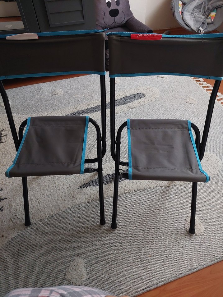 2 adet fiyatıdır hıc kullanılmadı Gri kumaş oturma ve sırt kısmı, mavi detaylı siyah çerçeveli çocuk sandalyeleri. Hafif ve katlanabilir yapıda, çocuklar için uygun.